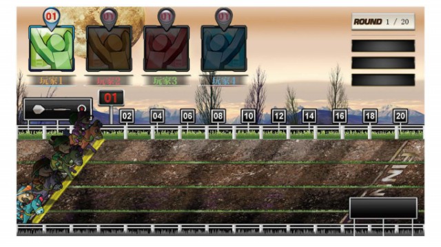 投中自己的馬所在的分區(qū)來(lái)讓馬前進(jìn), 投中一倍跑一部, 投中兩倍跑兩步, 以此類推, 若有玩家跑完20個(gè)分區(qū)便獲勝, 若無(wú)則跑在最前面者獲勝。