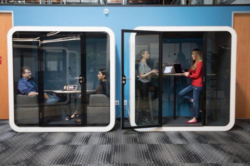 隱私倉采用90%的冷軋鋼制造,整體外觀造型顯得很年輕、時尚,顏色也是可以隨意搭配不同主題的裝修風格,建成后可隨時移動至辦公空間的任何角落;而在隱私性保護方面,隱私倉可對辦公場所中的各種聲音(包括電話、談話及咳嗽等)作出一定程度的隔離,而隱私倉內(nèi)的聲音較難傳出艙外,以保證員工私密性需求。