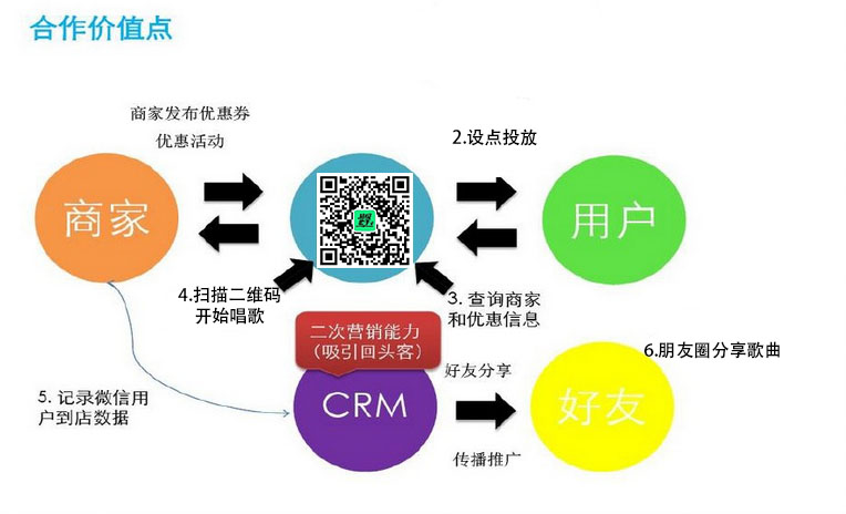 迷你k吧超級歌手自助點唱機帶你走進商機無限的“微”世界,為商場、電影院、電玩城等打造簡單便捷的微營銷,提高收益。迷你K吧“微營銷”的一種方式是,通過屏幕投放廣告和微信公眾號提供營銷推送服務,形成現在主流的O2O互動智能營方式: