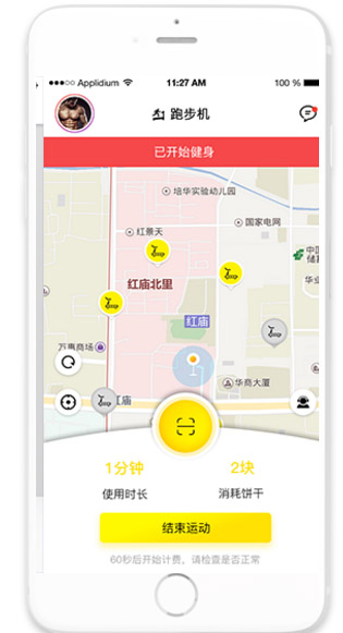 4,運動結束后,點擊APP上付費結賬。